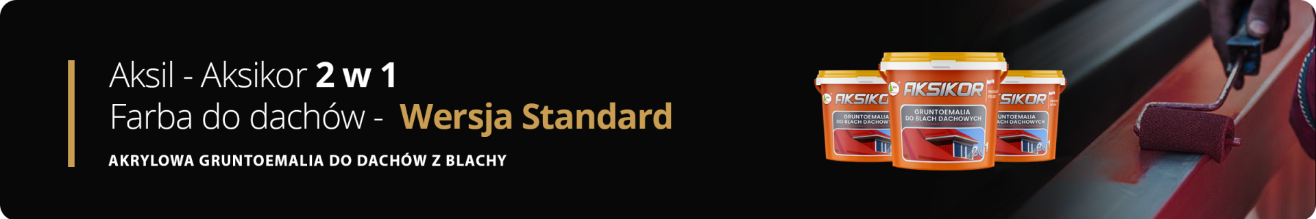 Aksil Aksikor – to farba gruntująco-dekoracyjna do dachów z blachy, która łączy cechy farby nawierzchniowej i gruntu. Farby do blachy Aksikor to farby akrylowe, wodorozcieńczalne, zapewniające ochronę i dekorację blachy, posiadające właściwości antykorozyjne oraz doskonałą przyczepność do podłoża. Farba ta jest oparta na nowoczesnych surowcach, gwarantujących wysoką jakość wykończenia oraz trwałość, a jednocześnie jest w pełni ekologiczna i wodorozcieńczalna. Farba tworzy matowe powłoki, szybko schnie oraz charakteryzuje się bardzo dobrą przyczepnością do podłoża. Powłoka z farby jest elastyczna oraz wodoodporna, a farba jest odporna na zmienne warunki atmosferyczne, co zostało potwierdzone w badaniach na dachach z blachy – przez okres 5 lat nie stwierdzono degradacji. Farba ta jest bardzo łatwa w użyciu, co ułatwia proces malowania. W przeciwieństwie do farb rozpuszczalnikowych, nie wydziela szkodliwych oparów ani nie ma przykrego zapachu, dzięki czemu jest bezpieczna dla wykonawcy. Farba Aksikor dostępna jest w 14 kolorach oraz może być kolorowana zgodnie z wzornikami RAL i NCS po uprzednim uzgodnieniu.